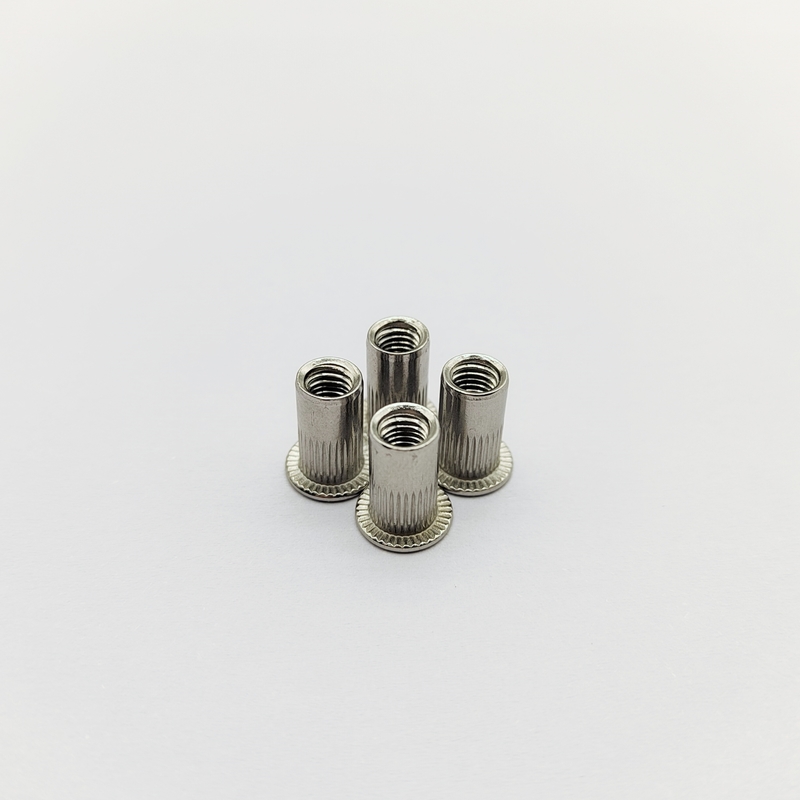 Разработаны для высокоударных сред, эти гайки-заклепки сочетают в себе перекрестную накатку (глубина 0,5 мм) и радиальные зазубрины для максимальной защиты от вращения. Плоская головка 90° обеспечивает аэродинамическое уплотнение, а электрополированный корпус из 316L устойчив к коррозии от соляного тумана. Частичная резьба (глубина 70%) сохраняет прочность на растяжение при снижении веса на 30%. Превосходит стандарты вибрации MIL-STD-1312.
